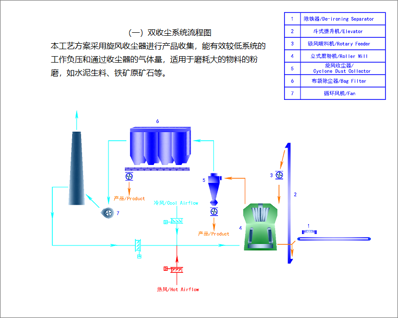 粉磨系統(tǒng)方面針對(duì)各行業(yè)各類(lèi)型物料的水分、易磨性、產(chǎn)品細(xì)度、安全性等不同物理和化學(xué)特性,開(kāi)發(fā)出針對(duì)性強(qiáng)、成熟可靠、安全高效的粉磨技術(shù)及配套裝備,核心裝備為HVM型立式磨,所處理的物料從高濕到干燥的物料,從異常難磨到易磨的物料,產(chǎn)品的細(xì)度從粗到細(xì),涉足領(lǐng)域之廣,所處理物料的種類(lèi)繁多。提供科學(xué)合理的立式磨粉機(jī)制粉系統(tǒng)全套工藝方案及設(shè)備選型,提供一體化的粉體加工解決方案。基于大量的工程實(shí)踐經(jīng)驗(yàn),多數(shù)的粉體加工主要分為以下3種工藝流程: